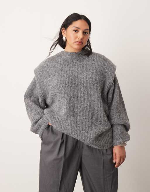 ARRANGE Curve – Grafitowy prążkowany sweter z poduszkami na ramionach