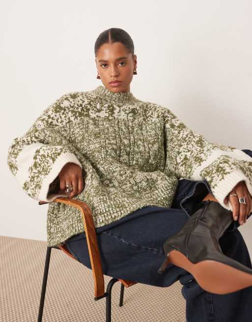 ARRANGE Curve – Gruby zielono-kremowy sweter z dzianiny o różnym splocie