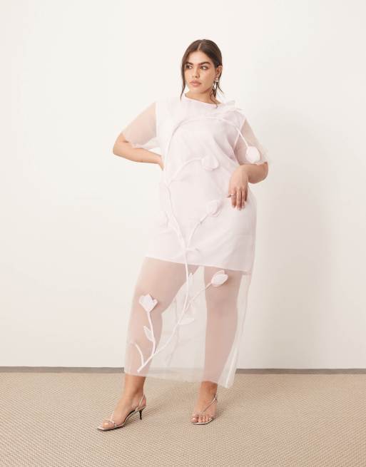 ARRANGE Curve – Jasnoróżowa sukienka maxi z organzy z kwiatową aplikacją