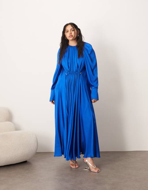 ARRANGE Curve – Kobaltowoniebieska satynowa sukienka maxi z drapowaniem