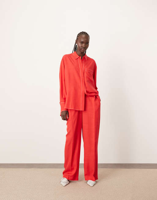 ARRANGE – Czerwone spodnie z szerokimi nogawkami i kontrastowymi szwami, część zestawu