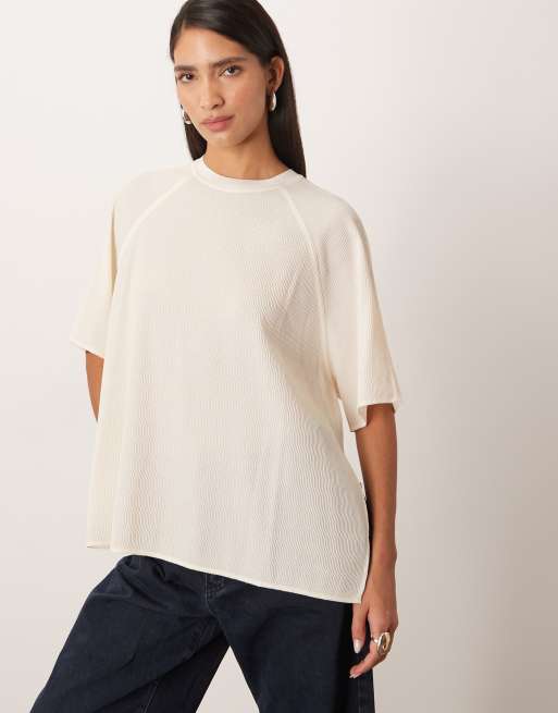 ARRANGE – Perłowy fakturowany T-shirt z raglanowymi rękawami