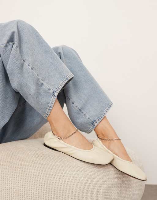 ARRANGE Premium – Edie – Płaskie skórzane balerinki w kolorze złamanej bieli z łańcuszkiem