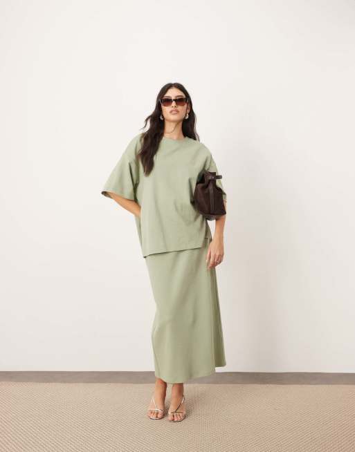 ARRANGE Premium – Gruba fakturowana dżersejowa kolumnowa spódnica maxi w kolorze pistacjowym, część zestawu