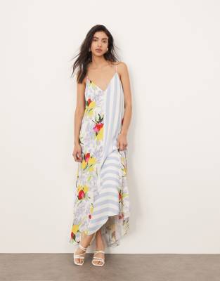 ARRANGE – Sukienka midi na ramiączkach ze wstawkami w kontrastowy wzór i asymetrycznym dołem