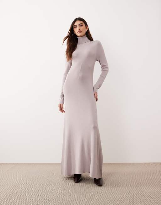 ARRANGE – Szara dopasowana maxi sukienka z prążkowanej dzianiny z wysoką stójką