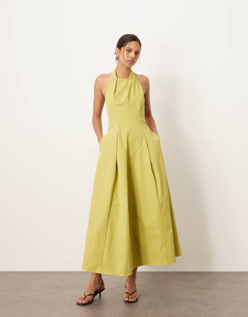 ARRANGE – Usztywniana żółtozielona sukienka maxi z kopertowym dekoltem typu halter