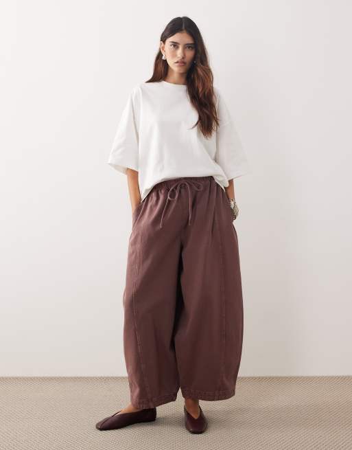 ARRANGE – Willa – Ściągane na sznurek spodnie z elastyczną talią, w spranym kolorze czekoladowobrązowym