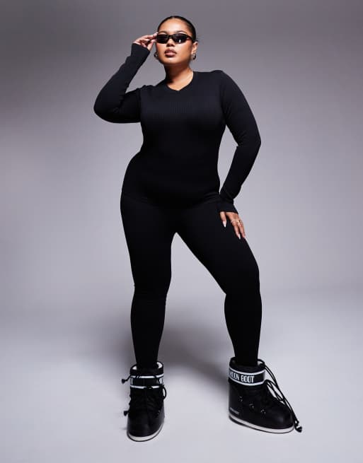 4505 Plus Ski – Czarne bezszwowe legginsy termiczne