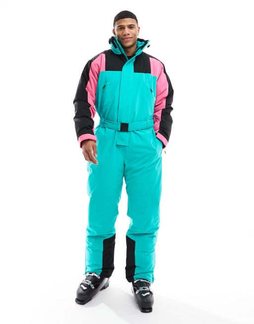 ASOS 4505 Ski – Czarno-turkusowy wodoodporny narciarski kombinezon w bloki kolorów