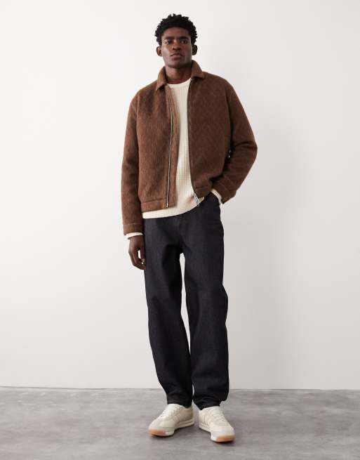 ASOS COLLECTIVE – Brązowa kurtka Harrington o fasonie oversize z mieszanki wełny