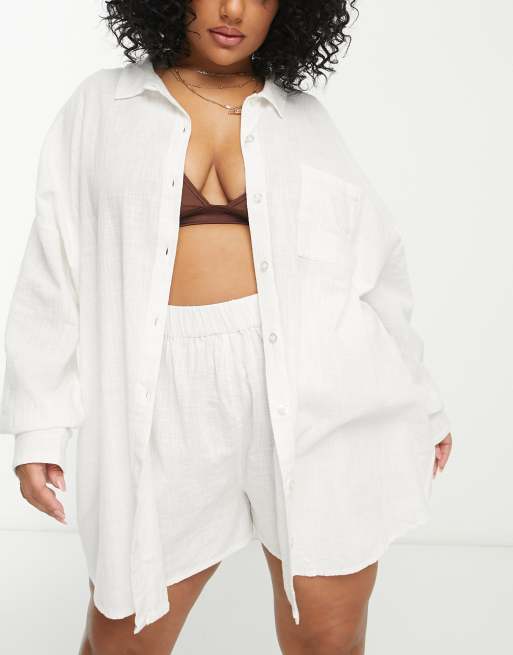 ASOS DESIGN Curve – Biała teksturowana koszula plażowa z zapięciem na guziki
