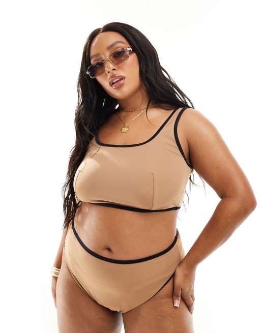 ASOS DESIGN Curve – Bikini w kolorze mokki z kontrastową lamówką