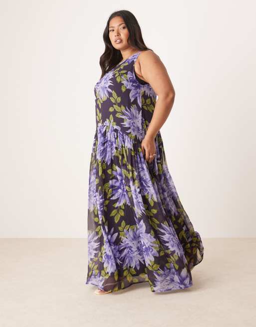 ASOS DESIGN Curve – Blown Up – Sukienka maxi z podwyższonym stanem w kwiatowy wzór