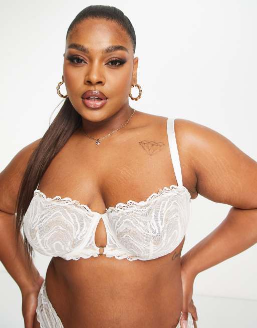 ASOS DESIGN Curve Bridal – Biała metaliczna balkonetka w abstrakcyjny wzór