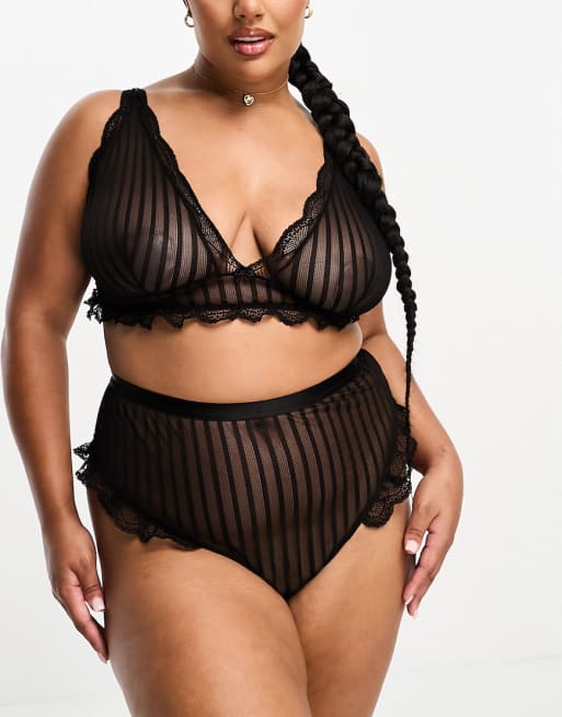 ASOS DESIGN Curve – Brooke – Siateczkowy prążkowany zestaw w czarnym kolorze