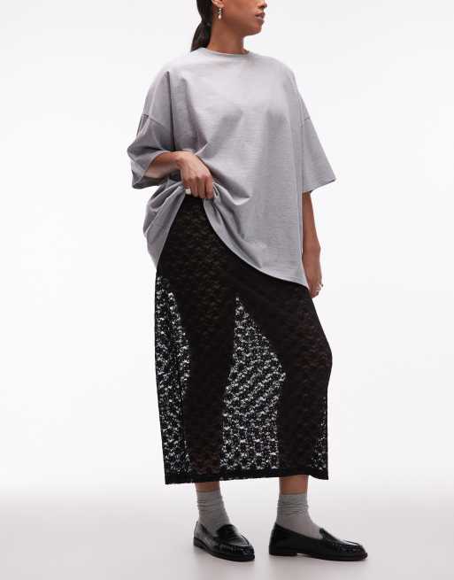 ASOS DESIGN Curve – Czarna kolumnowa spódnica maxi z prześwitującej koronki