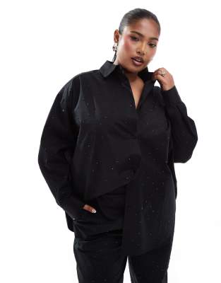ASOS DESIGN Curve – Czarna koszula zdobiona dżetami, część zestawu