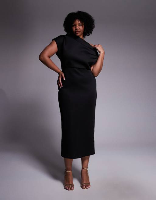 ASOS DESIGN Curve – Czarna sukienka midi z materiału w stylu scuba z wyrazistym dekoltem