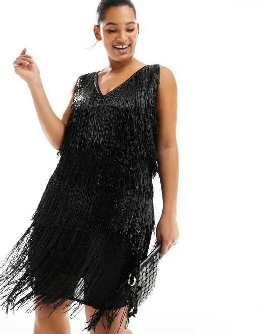 ASOS DESIGN Curve – Czarna sukienka mini zdobiona frędzlami