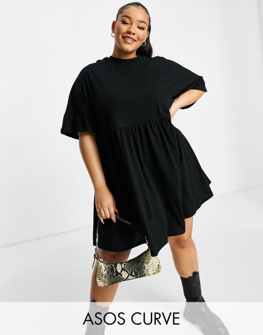 ASOS DESIGN Curve – Czarna sukienka o luźnym kroju oversize z rękawami z falbanką