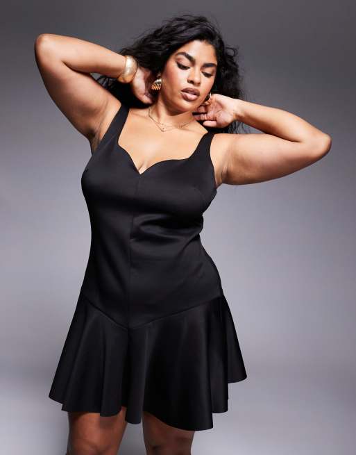 ASOS DESIGN Curve – Czarna usztywniana sukienka mini z dekoltem w kształcie serca i falbaną na dole
