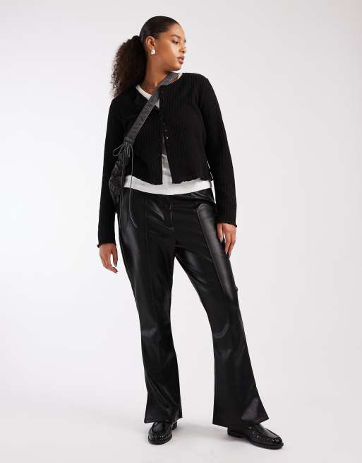 ASOS DESIGN Curve – Czarne dopasowane dzwony z imitacji skóry z zaszewkami