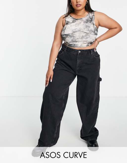 ASOS DESIGN Curve – Czarne jeansy typu skater z mieszanki bawełny ze średnim stanem – BLACK