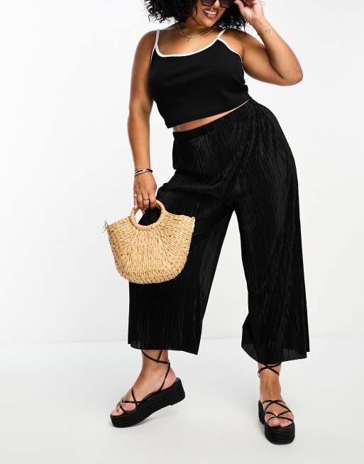 ASOS DESIGN Curve – Czarne plisowane kuloty z szerokimi nogawkami