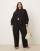 ASOS DESIGN Curve – Czarny zestaw o lnianym wyglądzie z koszulą oversize, spodniami i szortami