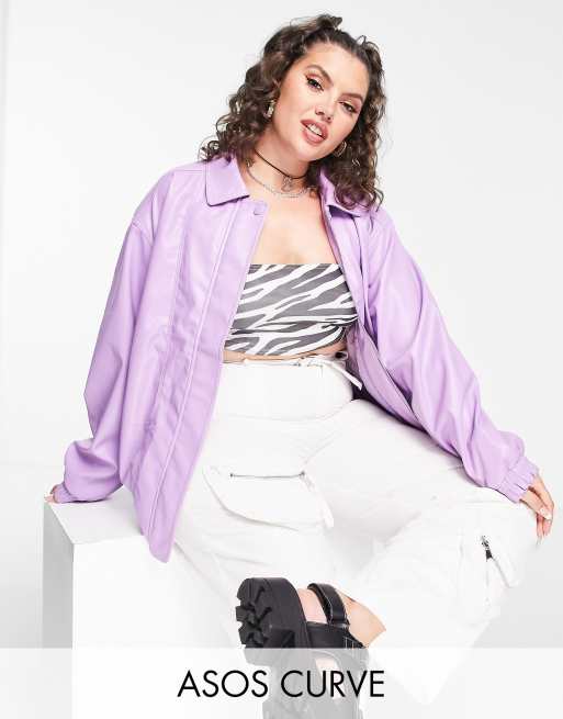 ASOS DESIGN Curve – Fioletowa kurtka bomberka z imitacji skóry