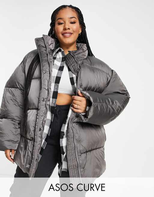 ASOS DESIGN Curve – Grafitowa, błyszcząca kurtka ocieplana oversize
