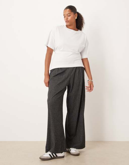 ASOS DESIGN Curve – Grafitowe melanżowe prążkowane spodnie z szerokimi nogawkami