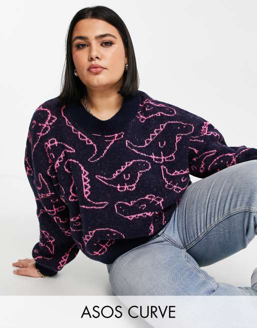 ASOS DESIGN Curve – Granatowy sweter w dinozaury