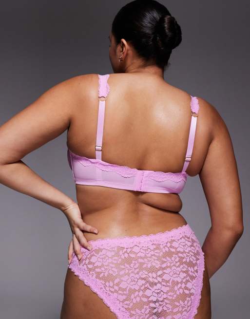 ASOS DESIGN Curve – Hazel – Różowe koronkowe figi brazylijskie z koronkowym wykończeniem