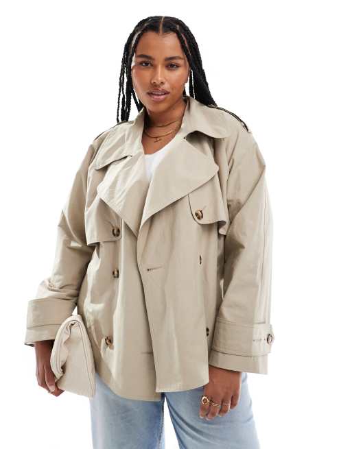 ASOS DESIGN Curve – Kamiennobeżowy krótki prochowiec oversize z paskiem