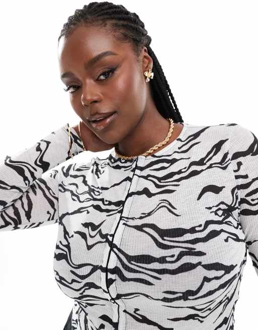 ASOS DESIGN Curve – Kardigan z długimi rękawami z siateczki w paski zebry