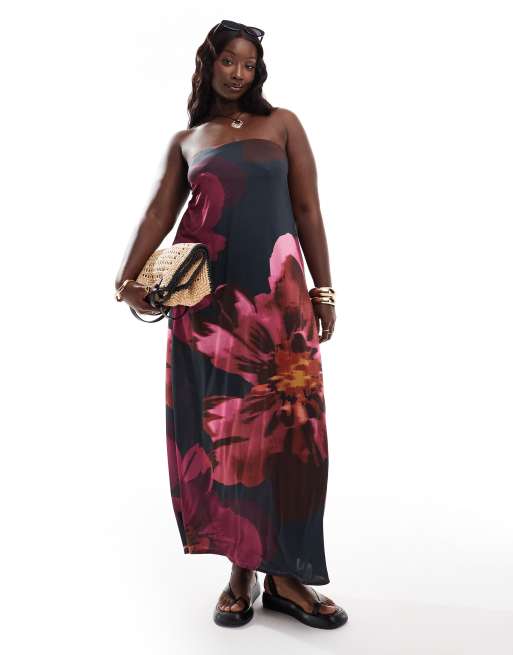ASOS DESIGN Curve – Kolumnowa sukienka midi bandeau w duży kwiatowy wzór