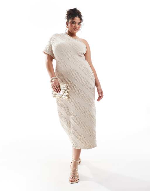 ASOS DESIGN Curve – Kremowa sukienka midi z plecioną wstawką