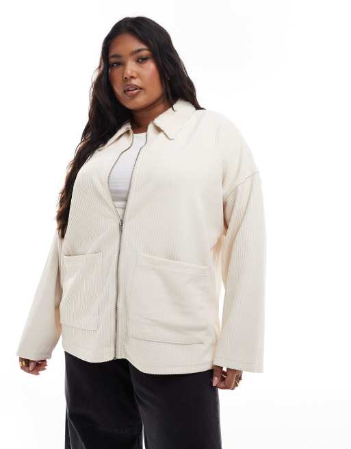 ASOS DESIGN Curve – Kremowa zapinana na zamek bluza ze sztucznego kożuszka