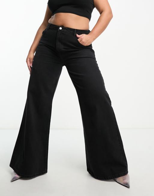 ASOS DESIGN Curve – Lekkie czarne jeansy z szerokimi nogawkami