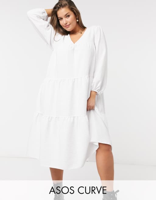 ASOS DESIGN Curve – Luźna biała sukienka midi z tkaniny typu kora, warstwowana