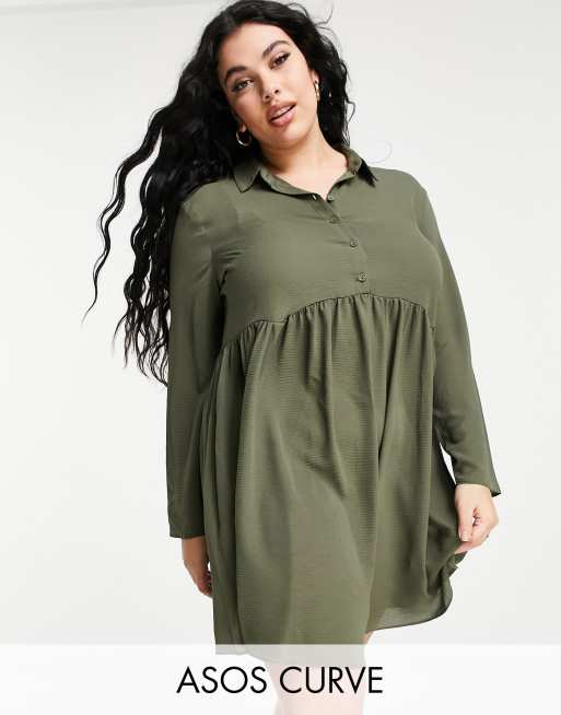 ASOS DESIGN Curve – Luźna koszulowa sukienka mini w kolorze khaki