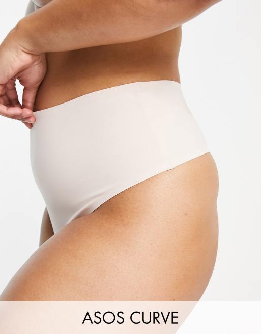 ASOS DESIGN Curve – Marina – Beżowe modelujące stringi z podwyższonym stanem z mieszanki poliamidu