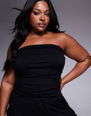 ASOS DESIGN Curve – Marszczony czarny top z dekoltem bandeau, część zestawu