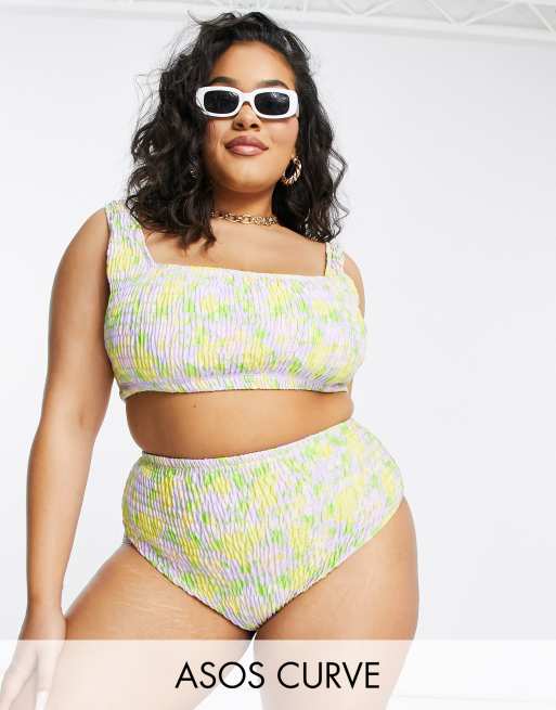 ASOS DESIGN Curve – Mix and Match – Marszczony dół od bikini z wysokim stanem i kwiatowym wzorem