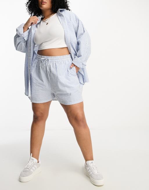 ASOS DESIGN Curve – Niebieskie szorty z kory w prążki, część zestawu