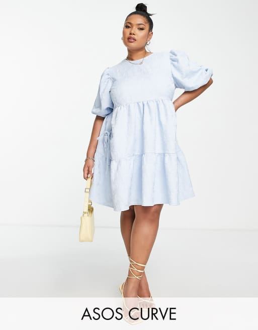 ASOS DESIGN Curve – Pastelowoniebieska żakardowa sukienka mini o warstwowym kroju z kieszeniami
