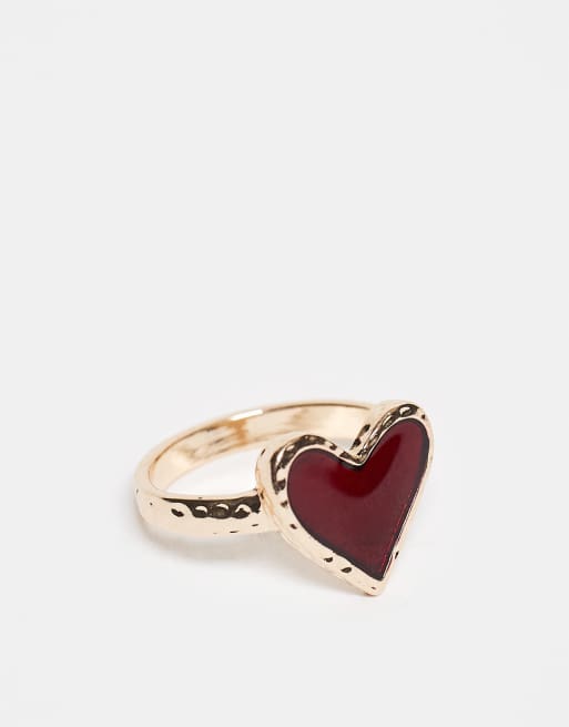 ASOS DESIGN Curve – Pierścionek w kolorze złota z bordowym sercem z żywicy