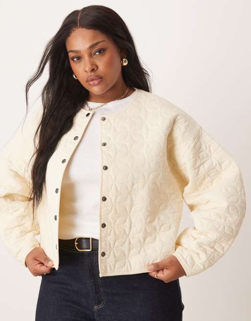 ASOS DESIGN Curve – Pikowana kurtka z rękawami typu kokon w spranym kremowym kolorze